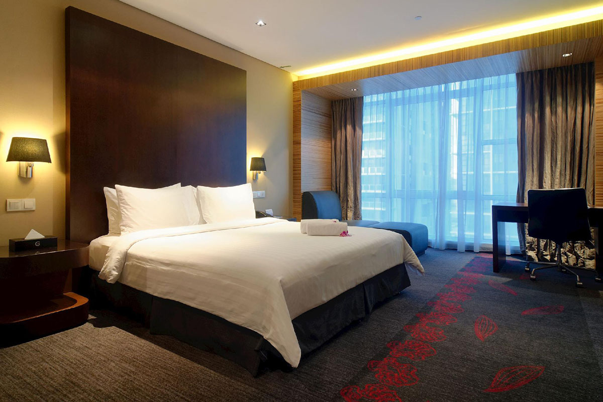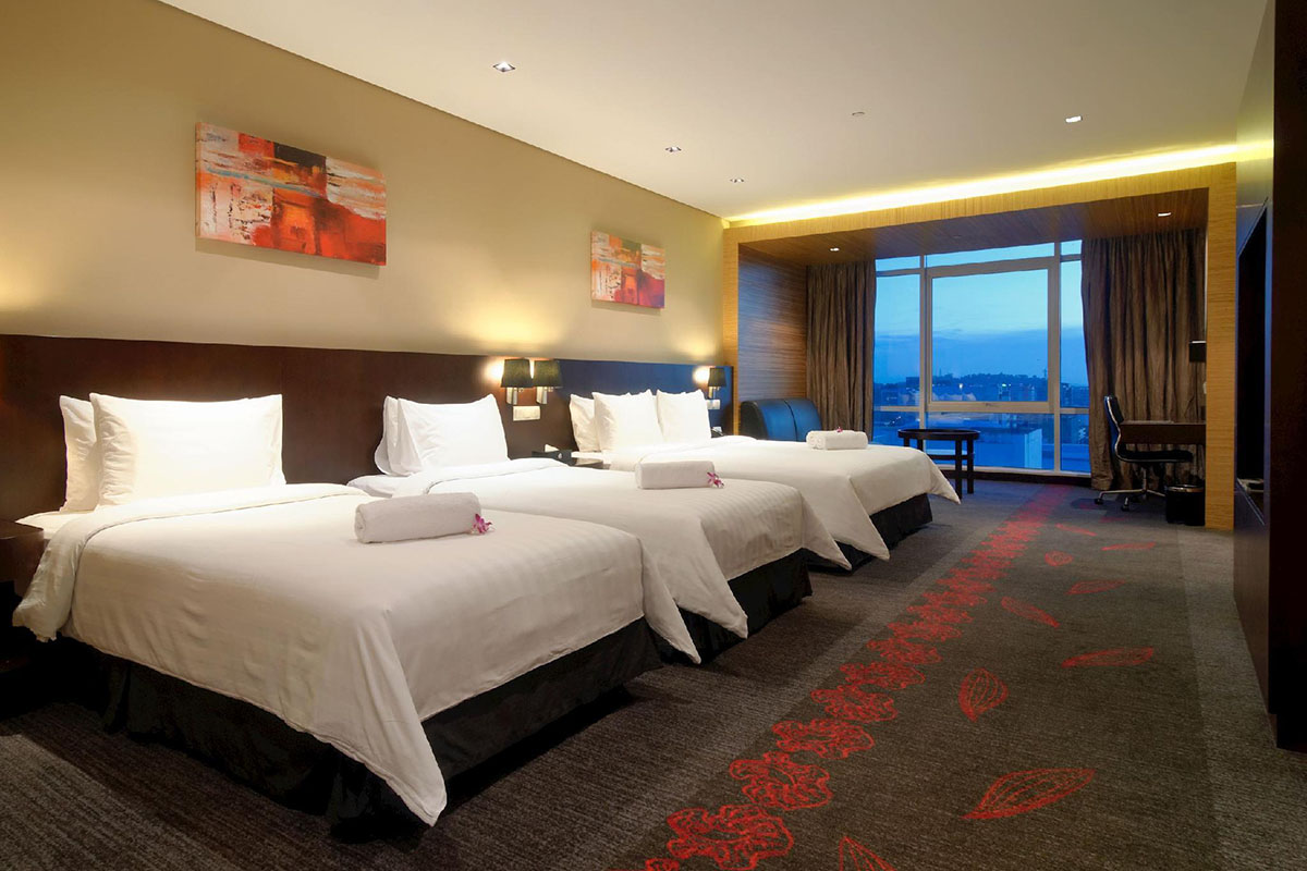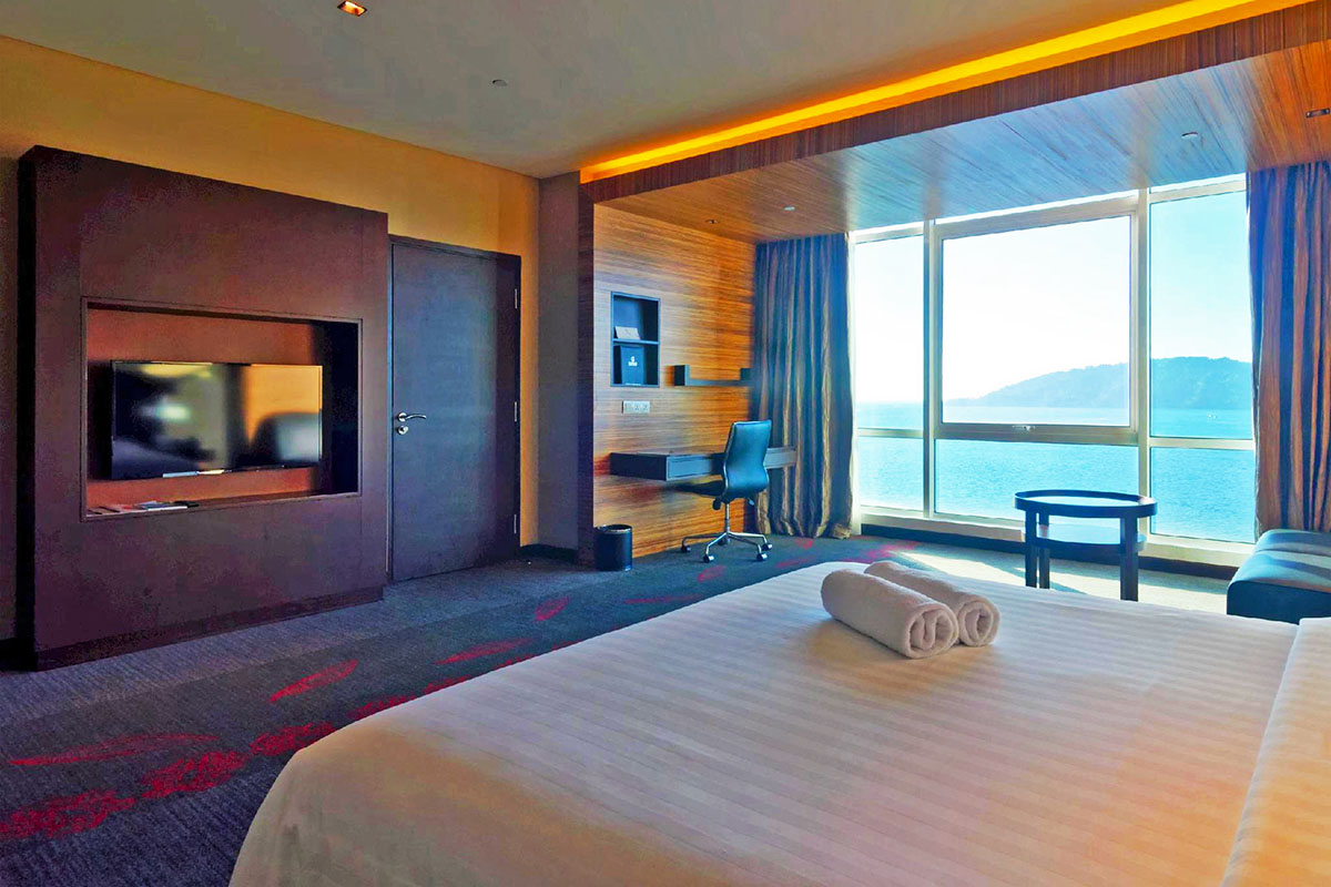 Hotel Grandis is a business hotel that adjoins Suria Sabah Shopping Mall in KK City Center, situated right between the Waterfront and Jesselton Point. Overlooking the sea, the hotel provides boutique family and executive accommodation in chic rooms equipped with air-conditioning, attached bathrooms with hot water, LED television sets with satellite channels, day bed with ottoman andfree Wifi.